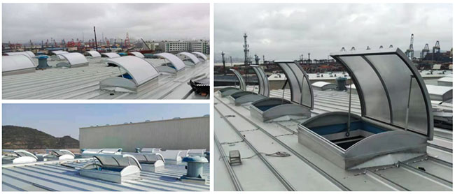 圓拱形的設(shè)計,外觀美觀大氣,能更好的防水,同時有效減少風壓阻力,天窗頂部為采光板,有效增加室內(nèi)亮度,開啟電機設(shè)計成24V電壓,可連接消防聯(lián)動控制系統(tǒng)及風、雨、煙感應(yīng)器。***開啟角度為45°。