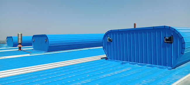 通風天窗是鋼結構廠房屋頂通風器的一種常用類型,其外形優美、圓潤、技術含量高、通風量大、風阻力小、性價比高、而且還可以通過閥板的啟閉來控制溫度和排氣量,適用性非常強,幾乎可用于任何需要通風的工業廠房車間。
